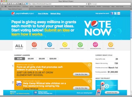 The result was the Pepsi Refresh Project, a program that awards 1.3 million in grants a month to ideas – from everyday people – that refresh the world.